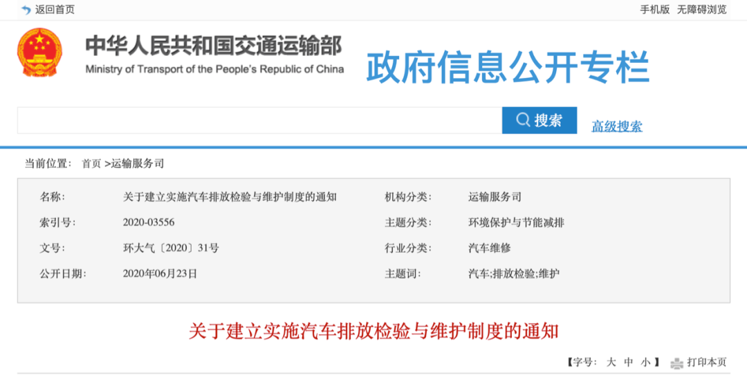 当前,我国汽车超标排放、监管尚未形成闭环的问题依然突出,随着汽车保有量持续快速增长,汽车排放已经成为大气环境污染的重要来源之一。《打赢蓝天保卫战三年行动计划》《柴油货车污染治理攻坚战行动计划》明确要求全面建立实施汽车排放检验与维护制度。汽车排放检验与维护制度是指依法对在用汽车排放进行定期检验、监督抽测和维护修理,使汽车排放符合相关标准要求的管理制度,其事关打赢蓝天保卫战全局,事关大气环境污染治理取得实效,事关大气环境污染治理体系和治理能力的现代化。地方各级生态环境、交通运输、市场监管部门要统一思想,提高认识,强化组织协调,形成联防联控机制,推动构建汽车排放检验与维护闭环管理制度,有效推进超标排放汽车维护修理,减少汽车排气污染物排放。
