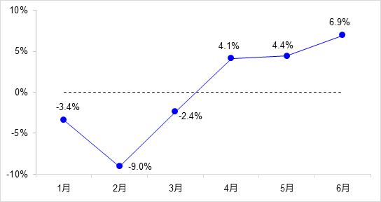 上半年,完成全社会货运量198.7亿吨,同比下降7.8%,二季度以来快速恢复,5月、6月连续正增长,增速分别为0.4%和3.9%。分方式看,公路货运量下降9.0%、水路货运量下降8.0%。