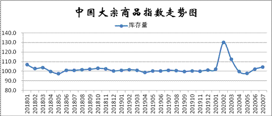 2020年7月份,大宗商品库存指数两连升至104.3%,较上月上升2.0个百分点,显示商品库存继续累积,库存压力进一步加大。各主要商品库存均呈现继续增加的态势,且增速较上月均有所加大。