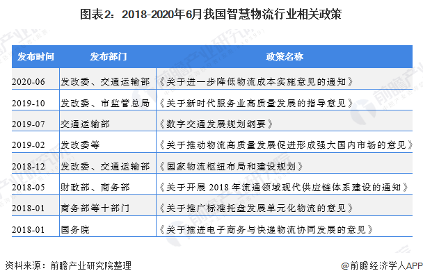 在“工业4.0”、“互联网+”发展的大背景下,我国物流业也迎来了智能化升级改造,为有力引导和支撑物流业规模化集约化发展、加快物流转型升级和创新发展,国家政府高度重视,发布了多项政策以促进“智慧物流”的快速发展。例如,2020年6月,国家发改委、交通运输部联合印发《关于进一步降低物流成本实施意见的通知》,《通知》提出将推进新兴技术和智能化设备应用,提高仓储、运输、分拨配送等物流环节的自动化、智慧化水平。