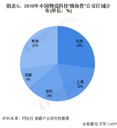 从区域竞争格局来看,目前,我国物流科技“独角兽”公司主要分布在北京、上海和深圳,这三个城市的“独角兽”公司合计数量占总数量的比重达64%。