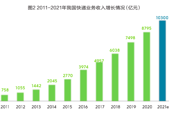 快递市场传统增长动能依然强劲,网络购物仍然是快递增长的主要动力,预计2021年实物商品网上零售额将超过11万亿元,占社会消费品零售总额的比重将超过四分之一,线上消费对线下的替代比例持续提升。