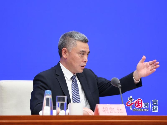 图为国新办新闻局局长、新闻发言人胡凯红请记者提问。中国网 伦晓璇 摄