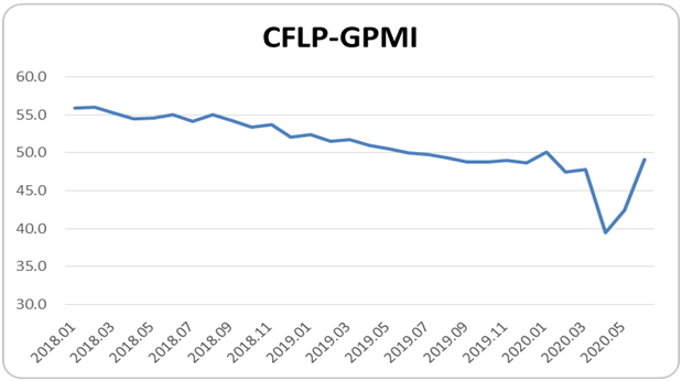 综合指数变化,全球PMI较上月明显上升,但指数仍在50%以下,表明全球制造业仍处于下降趋势,但降势有明显缓解迹象,全球制造业在向好的方向改变,但这种改变的持续性和力度仍有待观察。当前多数国家经济恢复是疫情防控措施由局部封锁到逐步解封的转变所带来的。经济活动的解封并不是在疫情得到逐步控制情况下开展的。一些国家和地区出现了疫情快速反弹的情况,这也为全球经济的未来恢复带来潜在威胁。世界卫生组织预测,第二波疫情的冲击仍需要警惕。