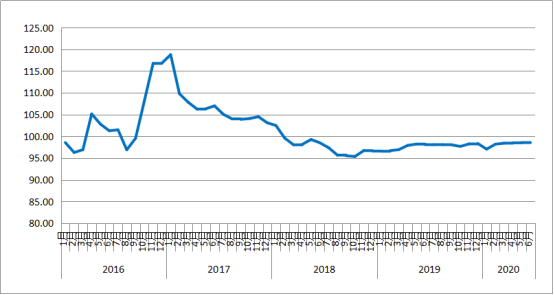 2020年6月份,由中国物流与采购联合会和林安物流集团联合调查的中国公路物流运价指数为98.6点,比上月略微回升0.04%,比去年同期增长0.5%。从各周指数看,第一、三周运价指数环比小幅回升,第二、四周指数环比小幅回落。