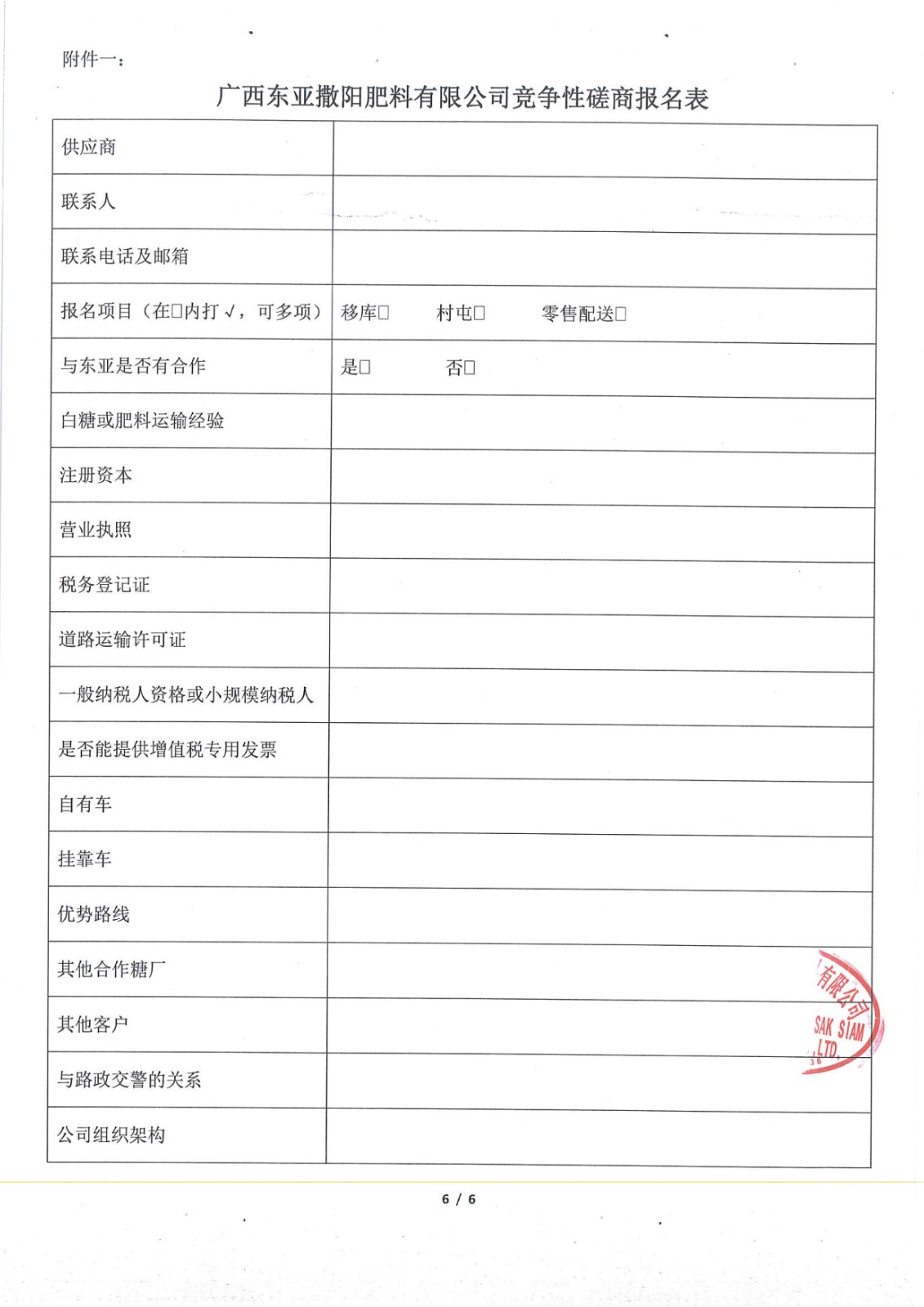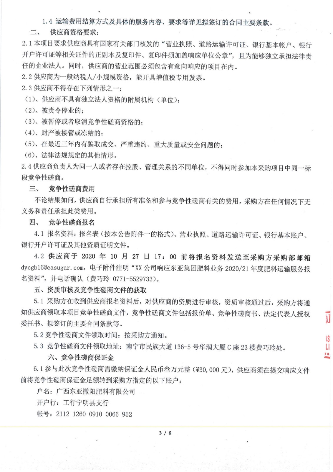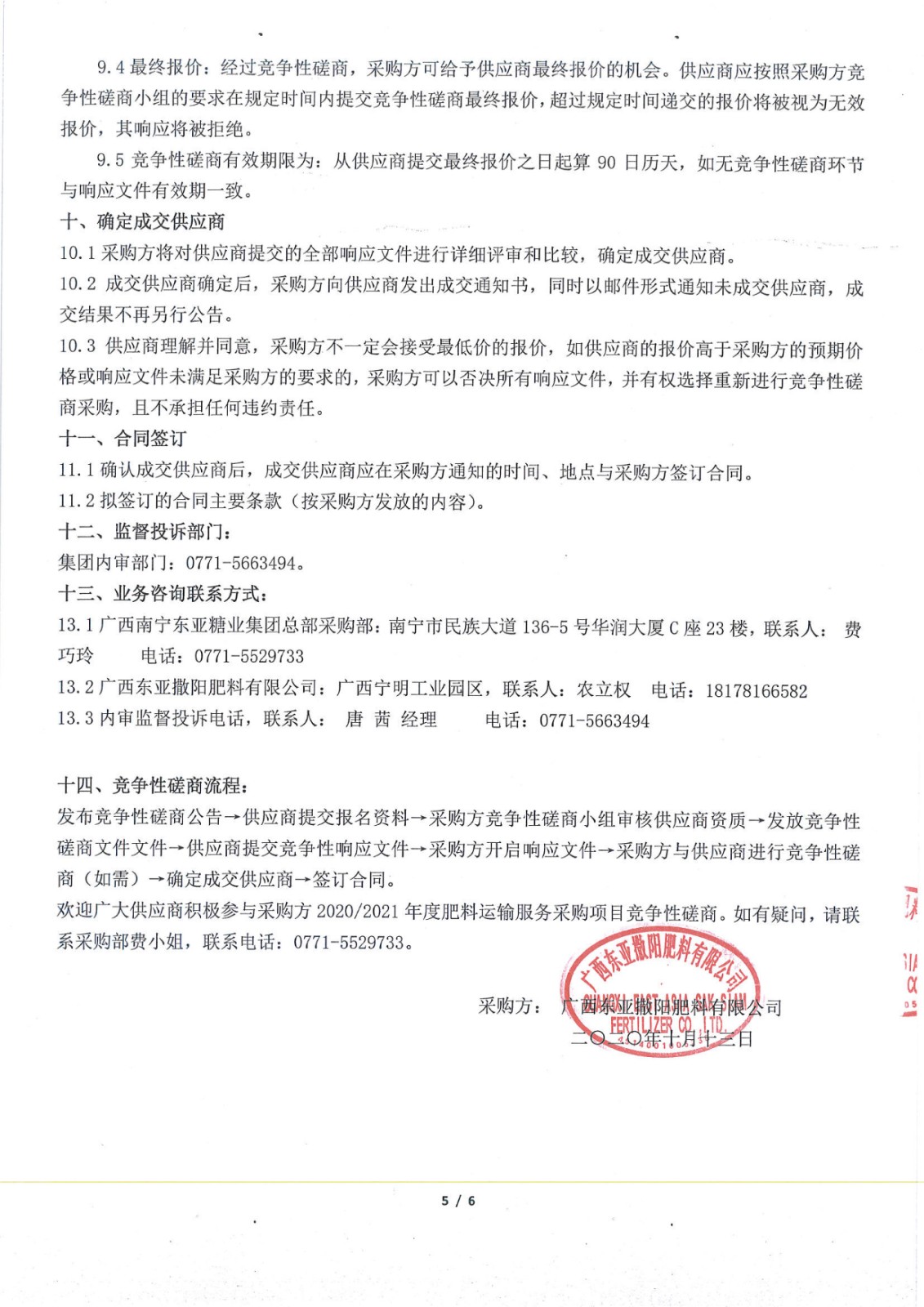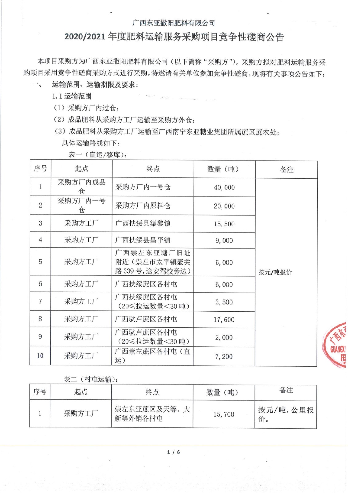 东亚撒阳2021年度肥料运输采购项目竞争性磋商公告