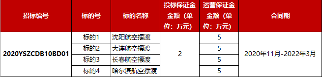 5.运营保证金:中标承运商需缴纳不低于5万元的运营保证金,不同标的运营保证金不同,具体见附件《标的基础信息》;