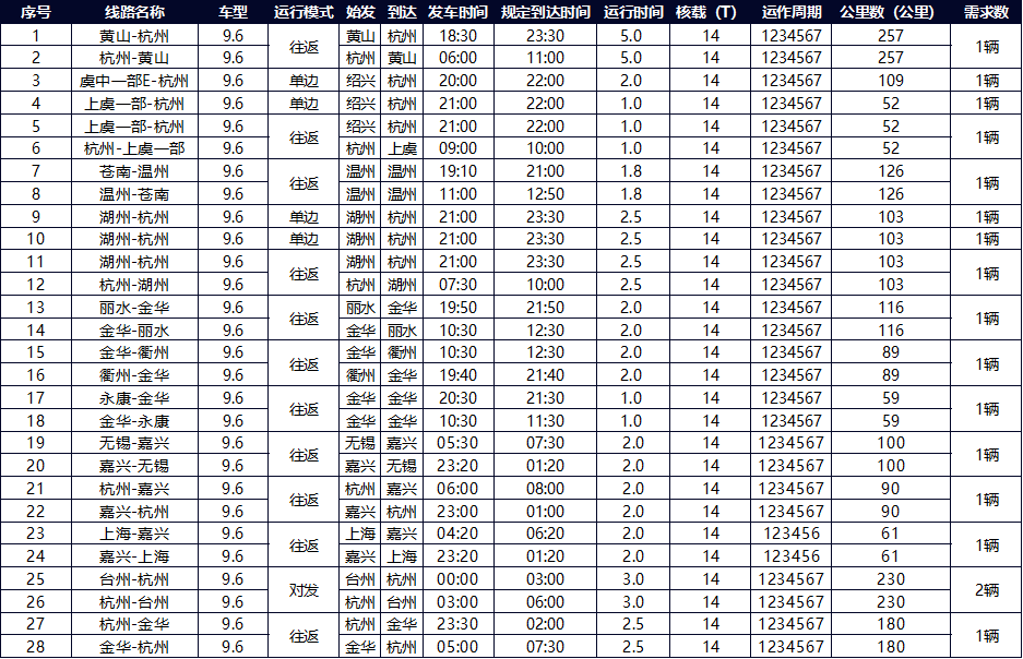 【注】:单边线路执行淡旺季多车型价格,单边线路必须都报淡旺季多车型价格,只报淡季或旺季价格视为无效报价;淡季时间为每年3月至9月,旺季时间为每年10月至次年2月。