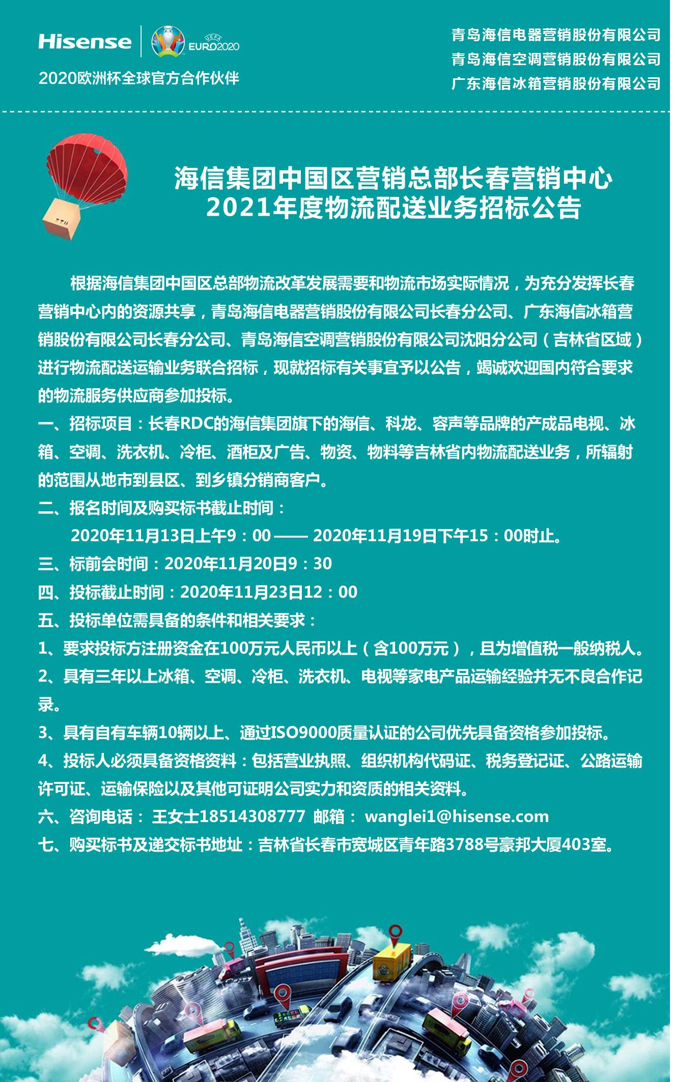 海信集团长春营销中心2021年度物流配送业务招标公告