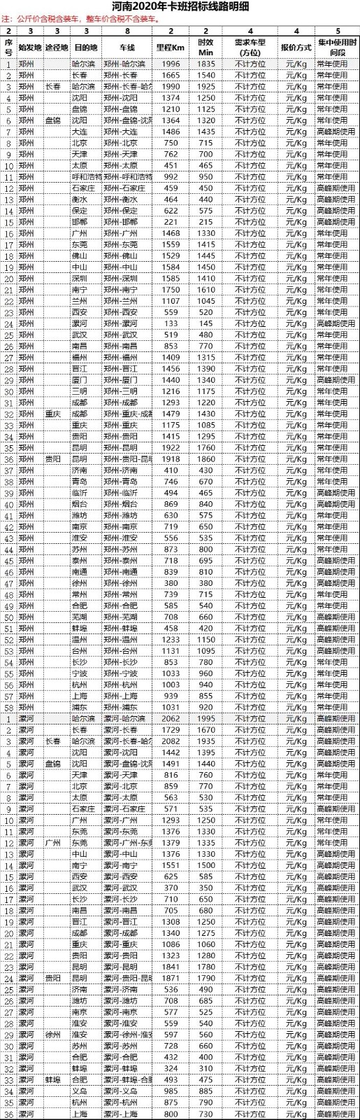 本次招标为含税价,公斤价含装车费,线路较多,具体线路信息可登陆系统。