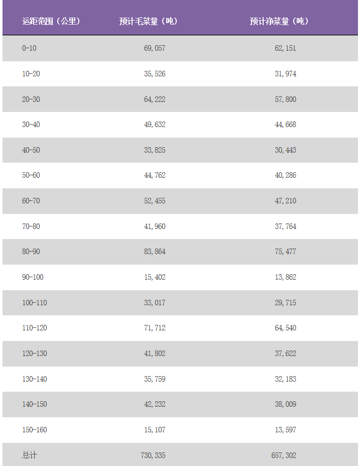 不同运距范围内的甜菜量