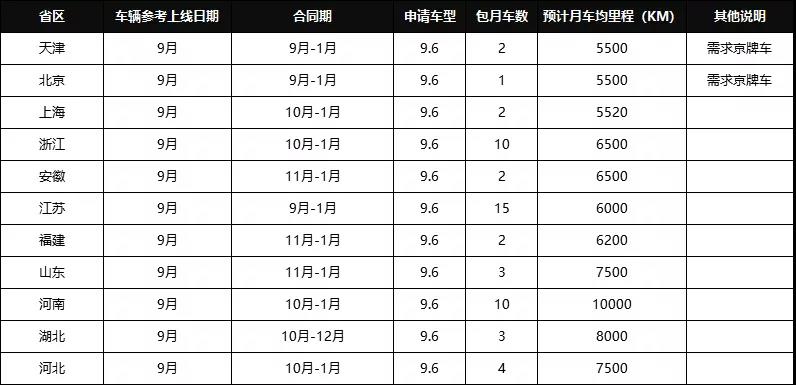 ②省区统一指挥调度车辆以下共需要54台9.6厢车运行,运行区域参考以下范围: