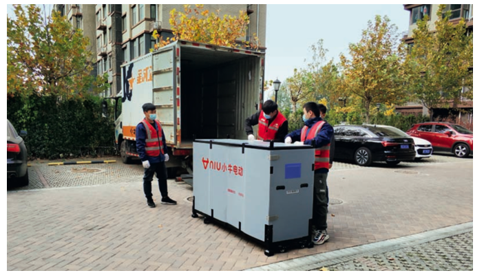 日日顺物流在循环箱设计上进行改进,使用一个或几个循环箱尺寸来适配所有产品型号。比如出行行业的电动车循环箱项目,在设计上使用伸缩轮槽的模块来适配不同轴距不同型号的电动车。同时,日日顺物流与合作客户共同研发了几个通用型的循环箱,做到尽可能的标准一致,减少包装资源浪费。