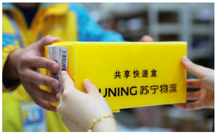 苏宁物流在推动物流周转箱标准化的过程中推出了共享快递盒——作为苏宁物流绿色循环包装的创新标杆产品,2019年一年投放使用累计超1.5亿次。而且还兼具密度小、轻便易用、表面刚度高、抗划痕、柔韧性好、不容易开裂的优点,可有效循环使用60次以上,成品单次使用价格比纸箱低30%以上。