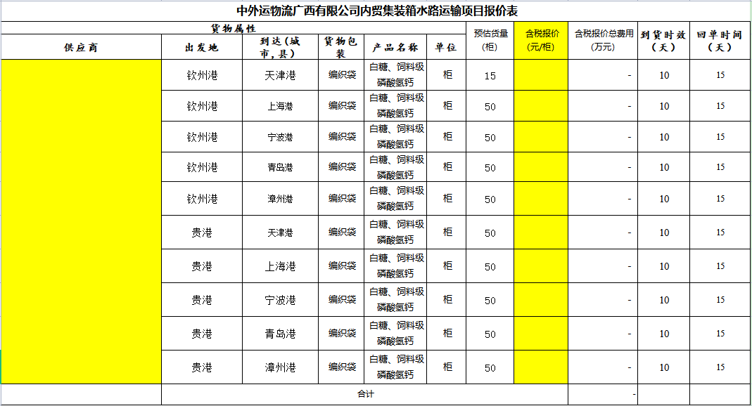 按照上级公司要求,对广西中外运久运物流有限公司的各类运输项目进行集中采购,集中面向社会公开招标,欢迎有意向的物流合作伙伴前来投标