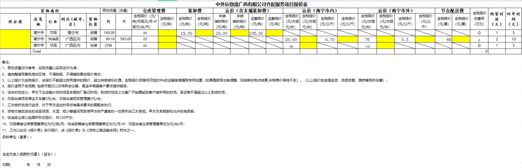 3)开标地点:南宁市良庆区海辉路21号(中外运物流园)