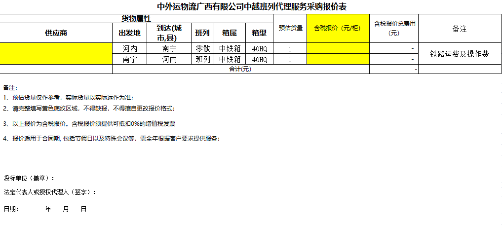 (2)报名方请在上述报名截止时间之前,将报名材料的盖章扫描件发至我司指定邮箱;邮件标题请备注:“CG2212-127-运作一组-中越班列代理服务采购供应商报名+(公司名称)”邮件发送至gxyygl@cmhk.com;