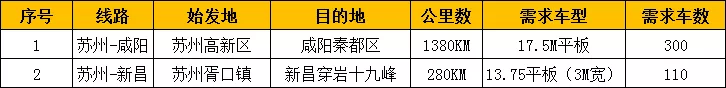6.车型需求:13.75M(3M宽)平板和17.5M平板。车辆需车况良好证件齐全,必须购买车辆保险。