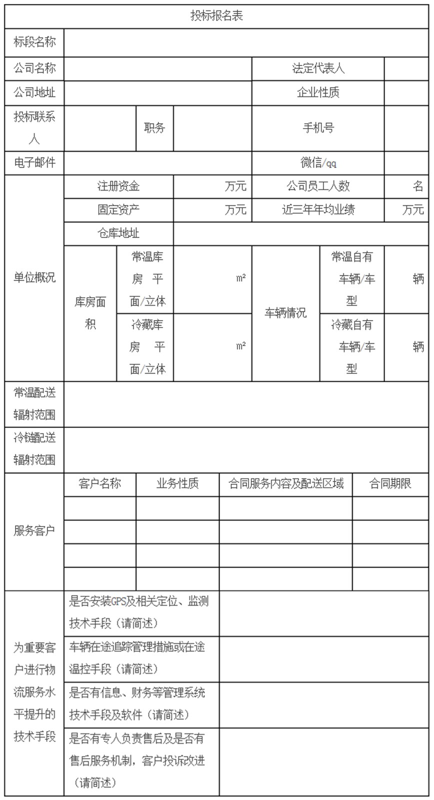 1、凡有意参加入围筛选活动的物流承运商,请于2020 年6月12日17:00前,按照本公告附件《报名表》的格式内容要求如实填报企业相关资料,并将《报名表》打印盖章后的扫描件(须保证扫描件公章及填报信息清晰可见)发至指定邮箱(邮箱地址:syspwlgl@163.com)。